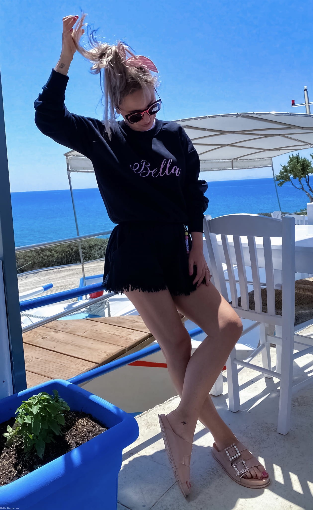 Bluza dresowa z haftem i ozdobnym rękawem Bella