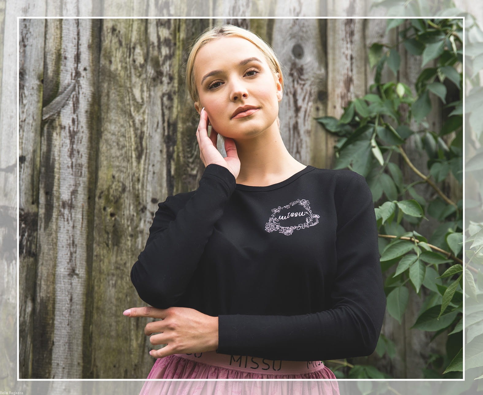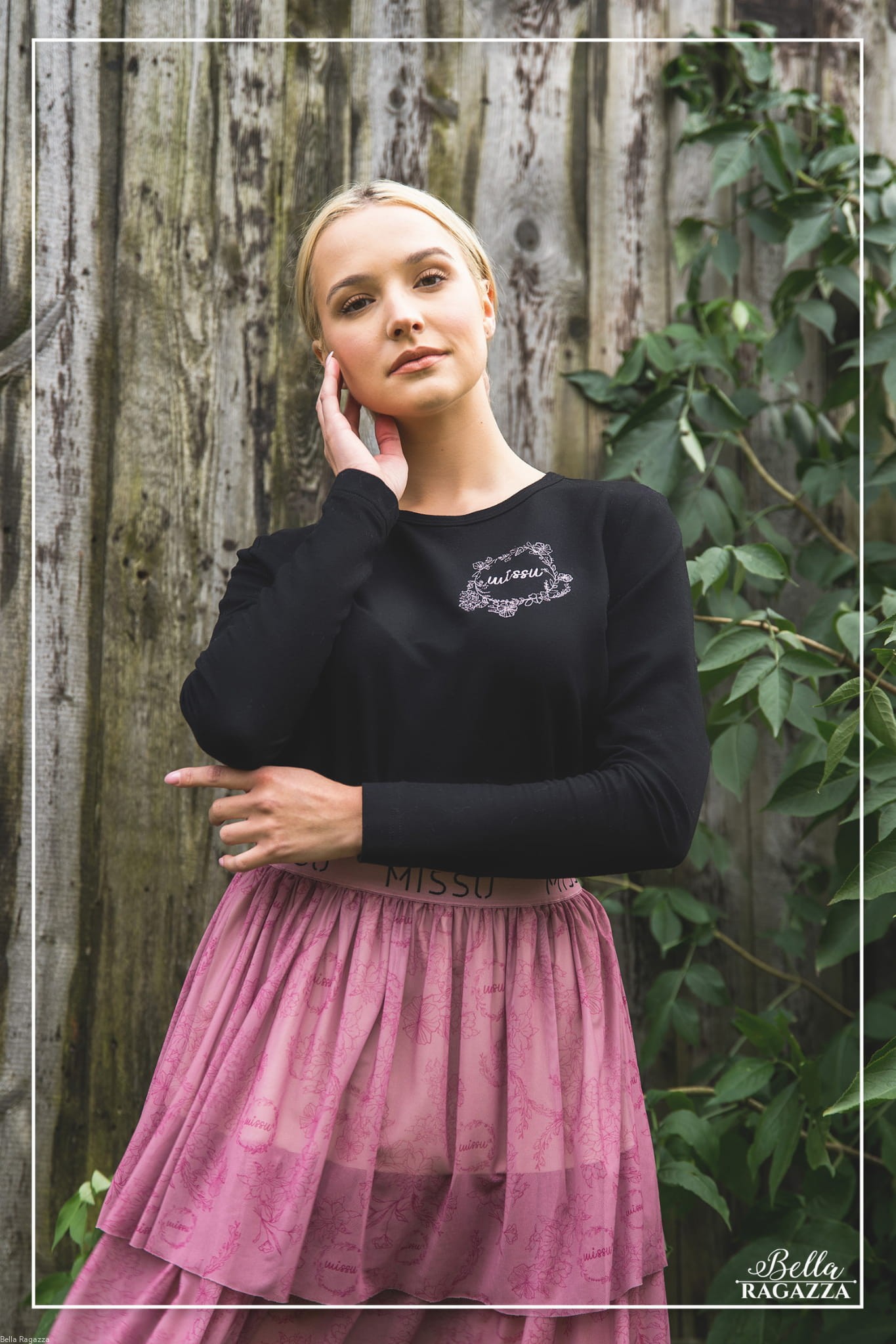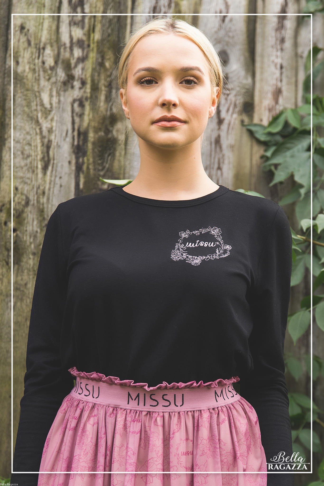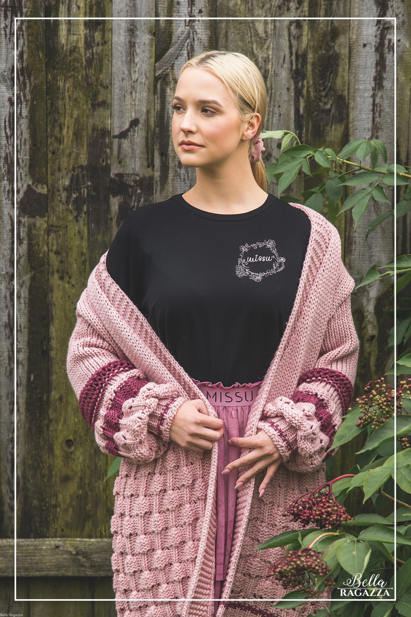 Dodatkowym elementem jest bardzo kobiecy haft w kolorze brudnego różu