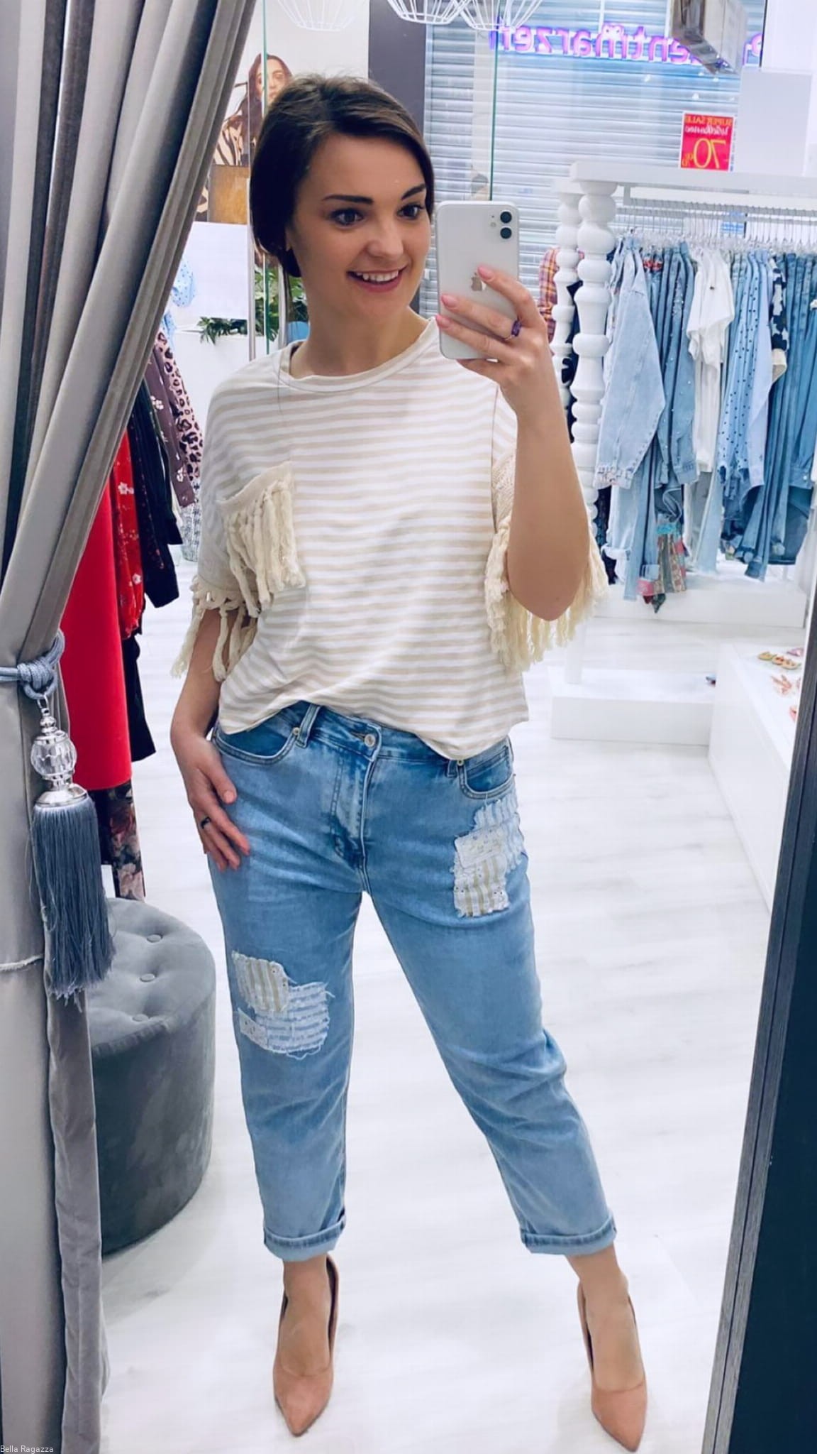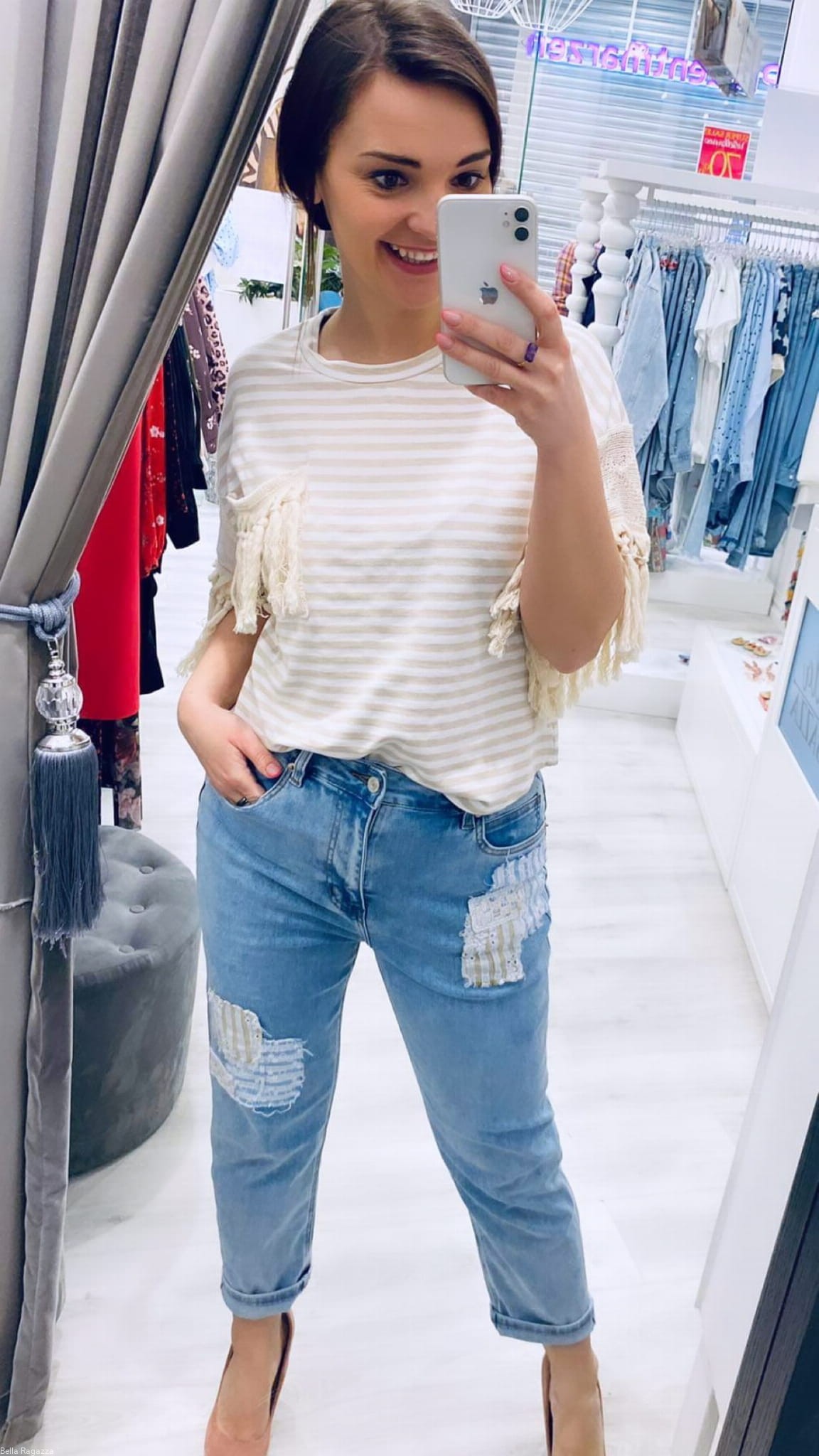 - Modelka brunetka nosi rozmiar M/L i ma na sobie S