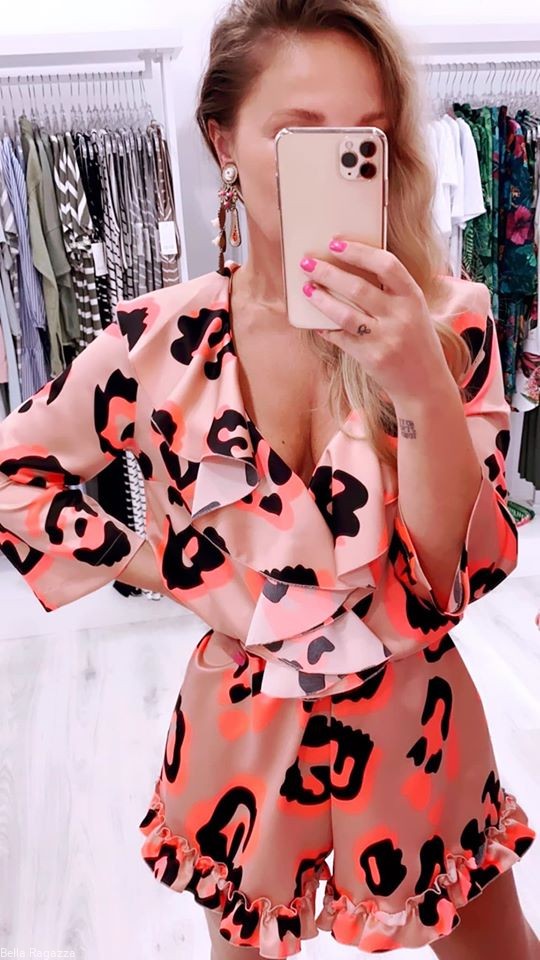 - Krótkie spodenki wykończone falbanką