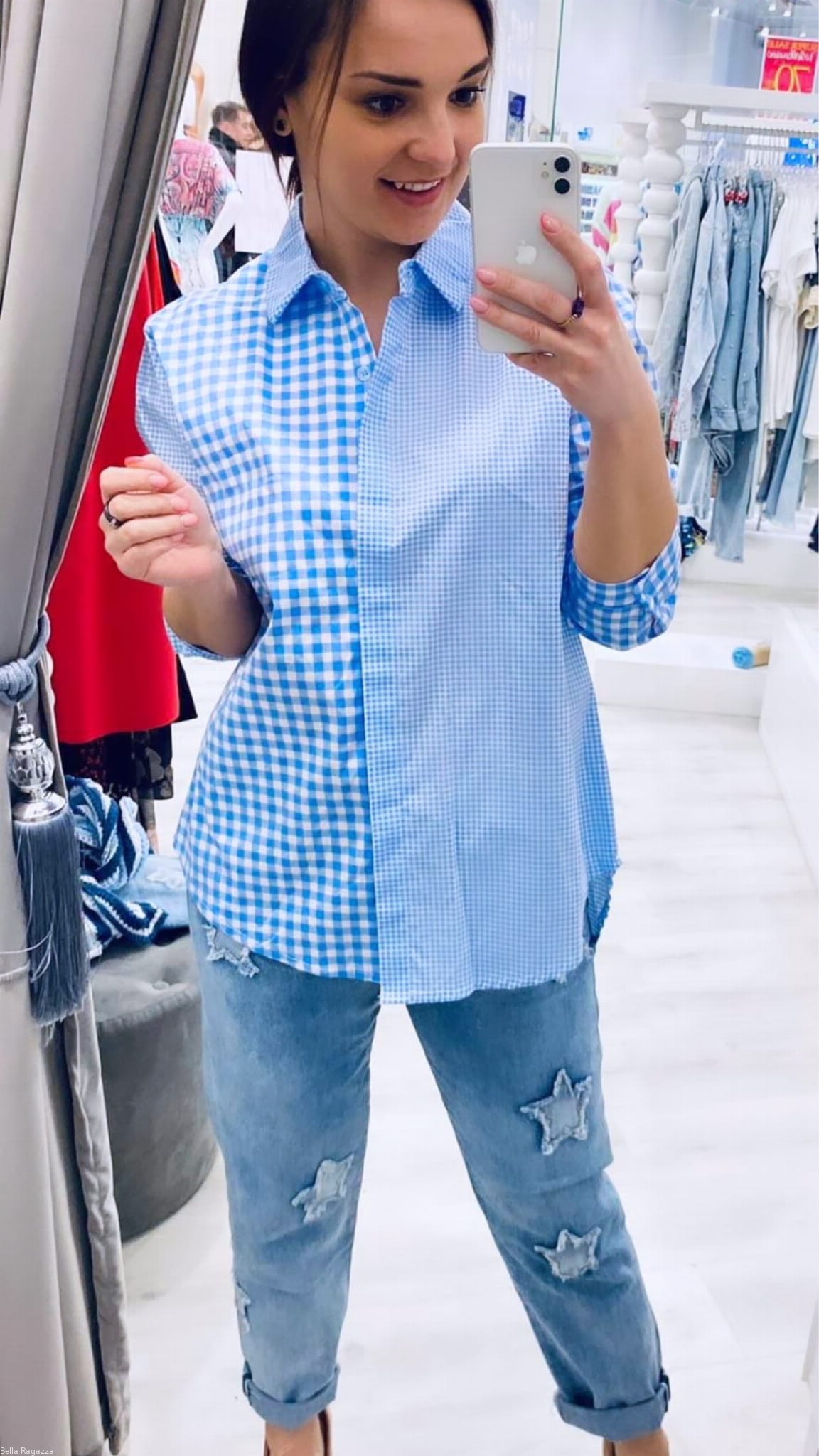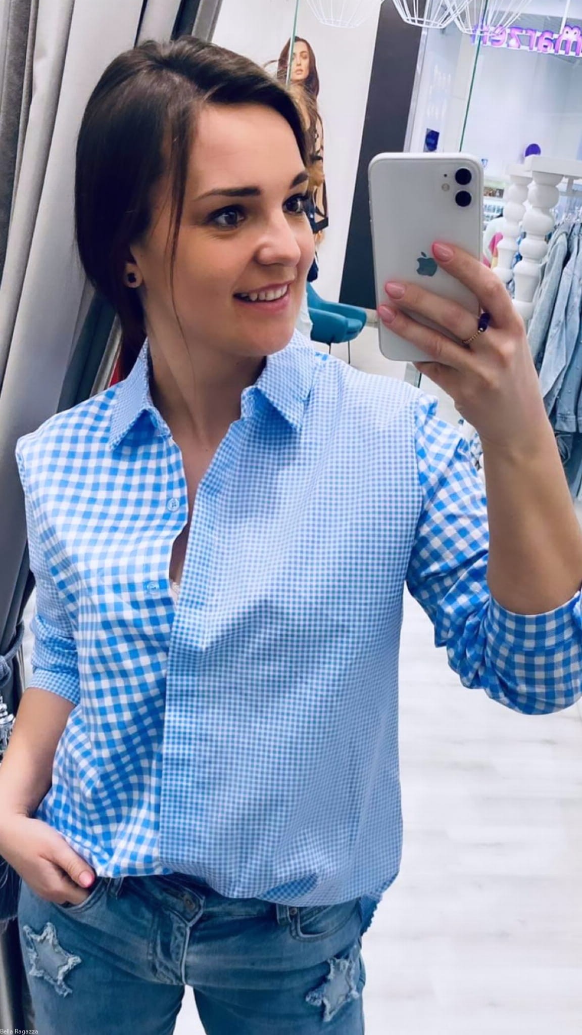 Koszula w oryginalną kratkę biało-niebieską