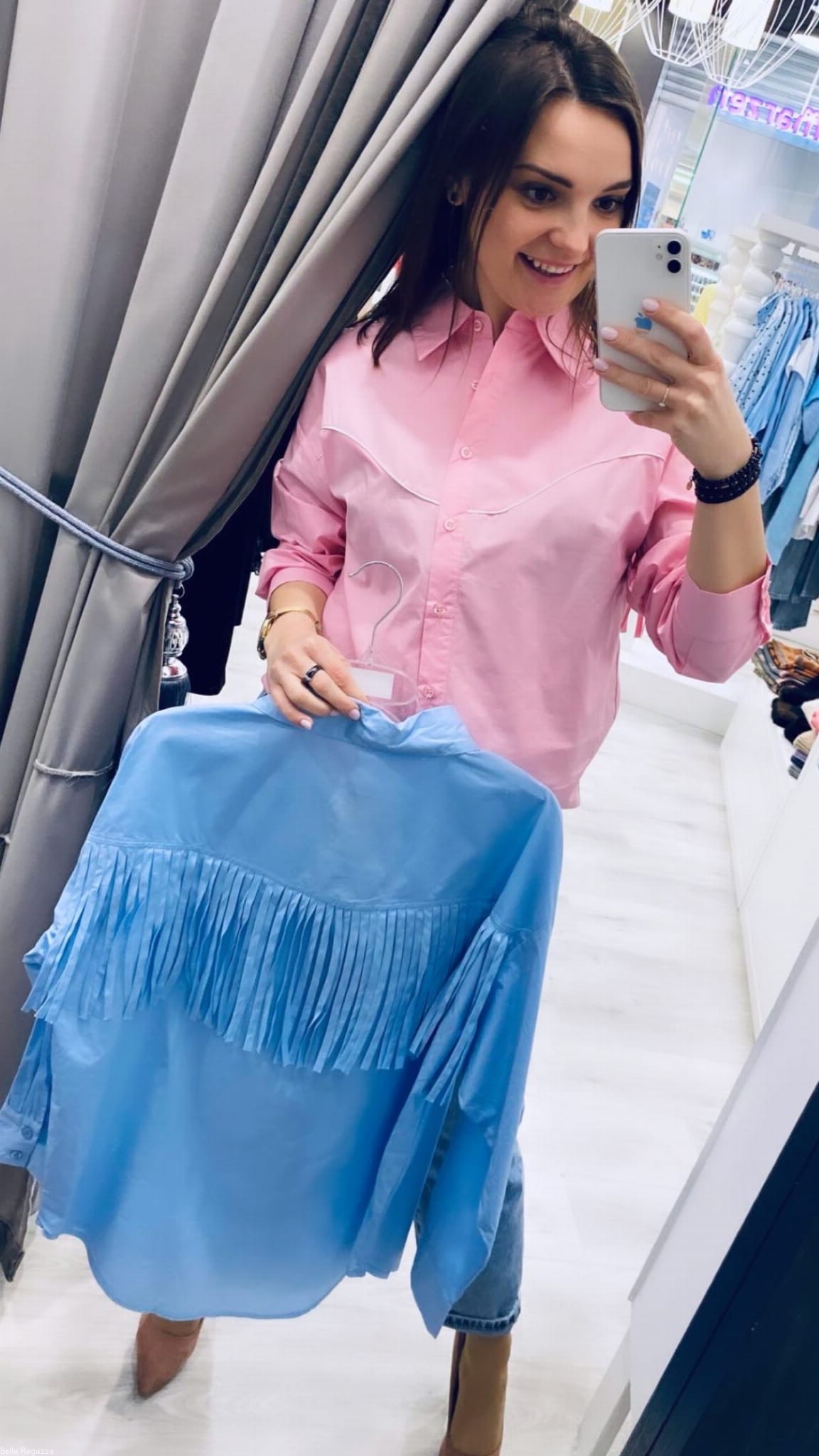 Oryginalna koszula z ozdobną wypustką i frędzlami.