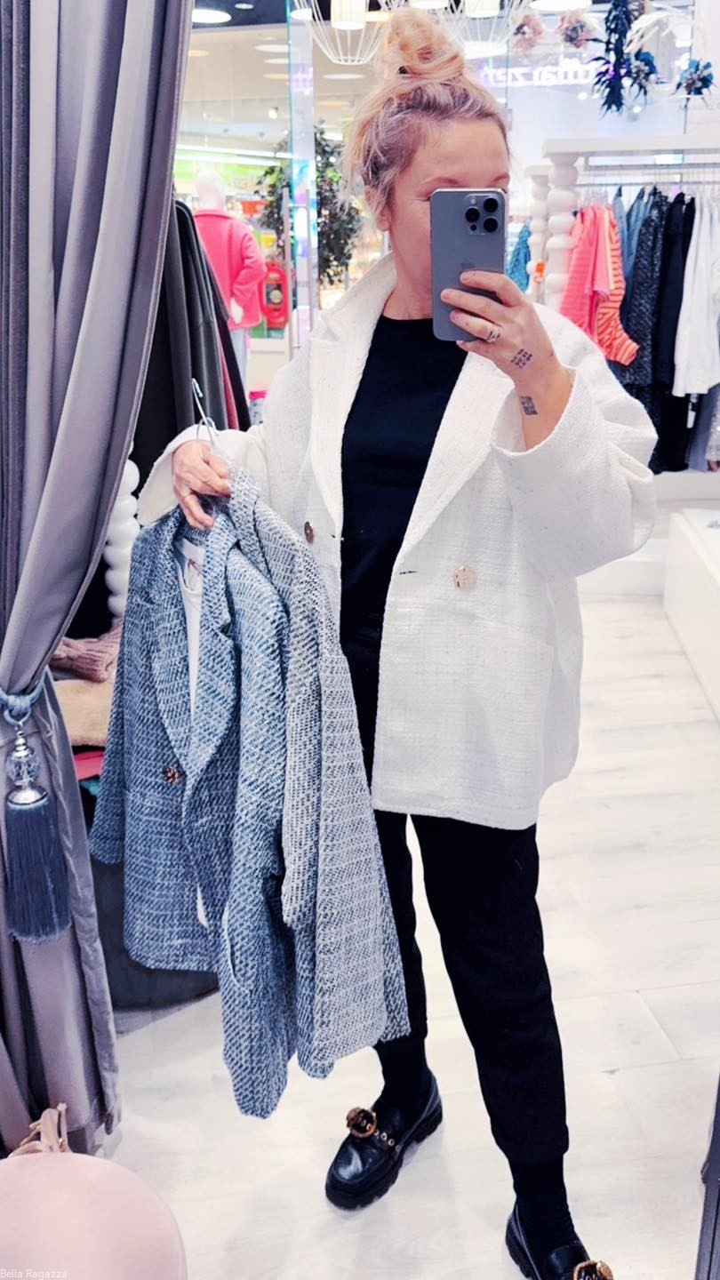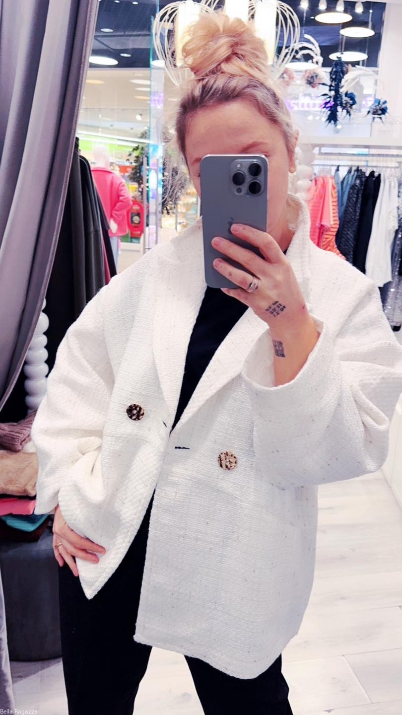Modelka blondynka ma 162 cm wzrostu i nosi rozmiar XS, Modelka brunetka ma 170 cm wzrostu i nosi rozmiar MWymiary:• Długość całkowita: 68 cm• Szerokość od pachy do pachy: 61 cm