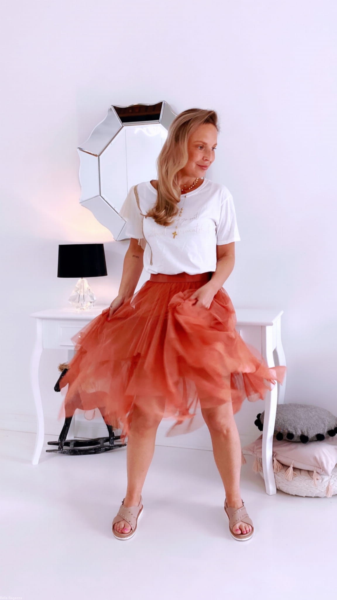 - Tiulowa spódnica długości midi