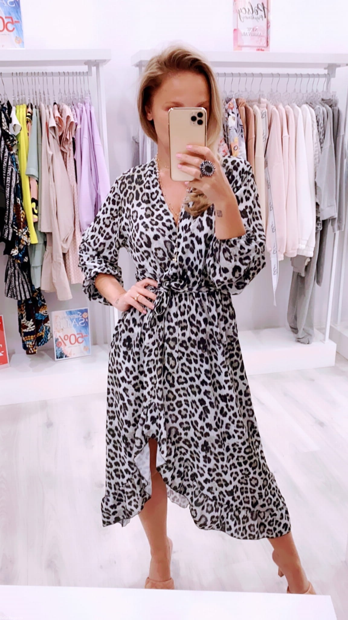- Kopertowa sukienka w panterkę