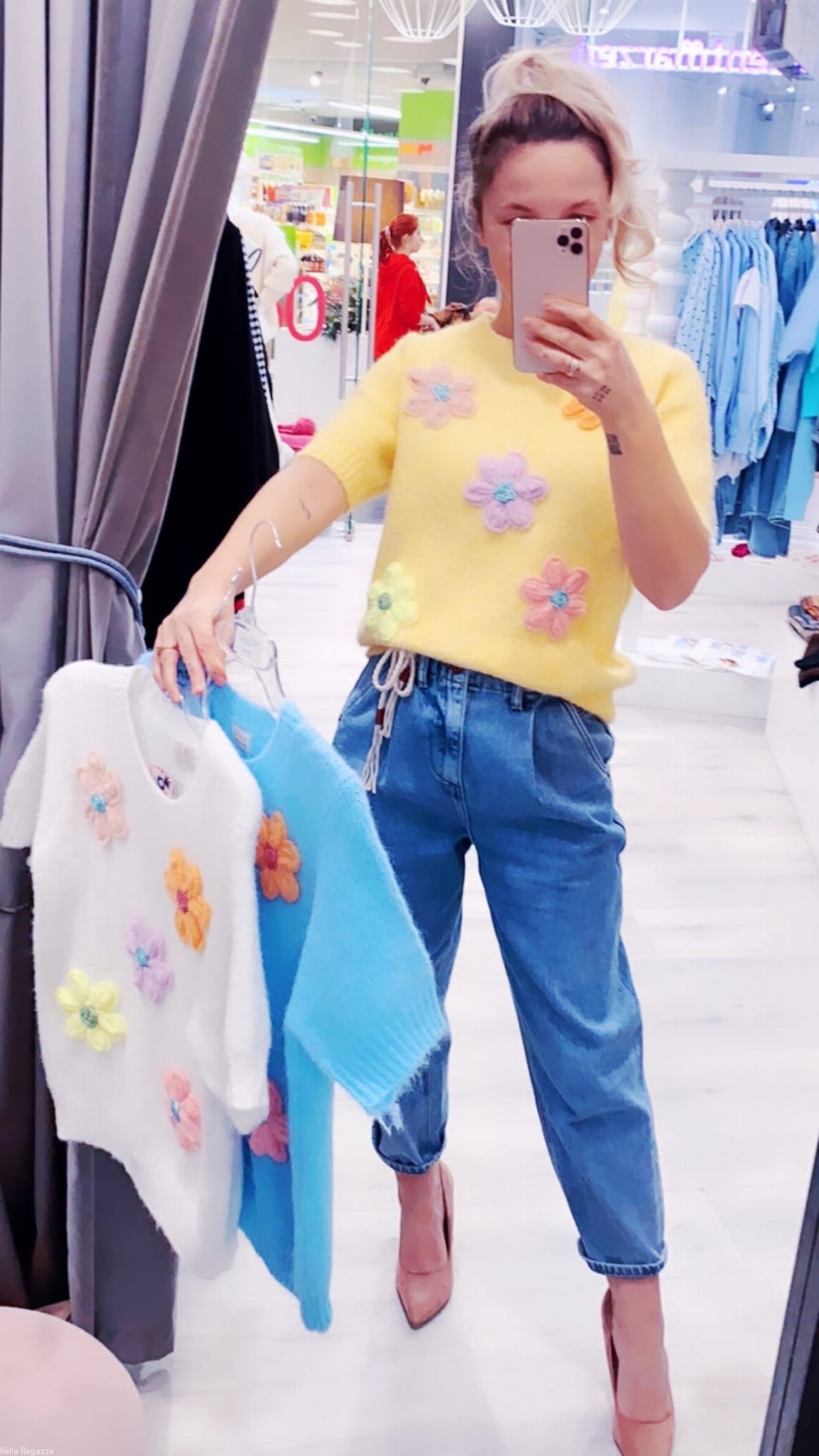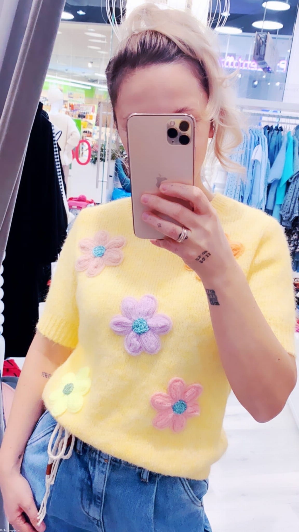 Sweterek bardzo się uciąga, jest elastycznyUbrania mierzone są na płasko. Poszczególne wymiary mogą różnić się +/- 2 cm.