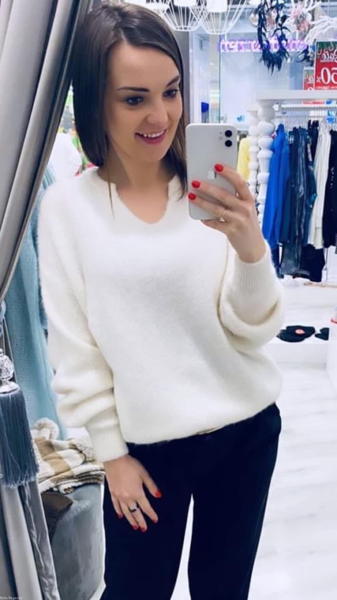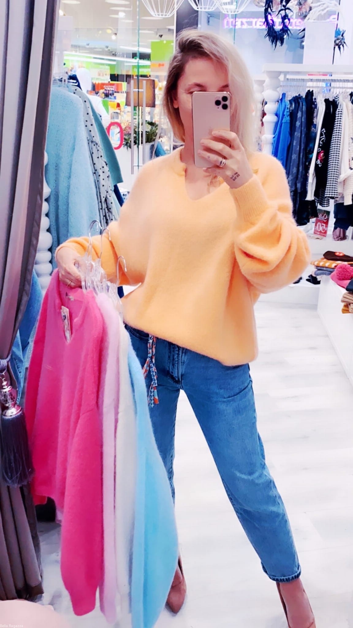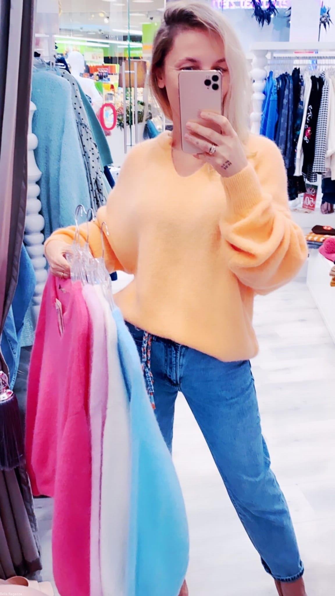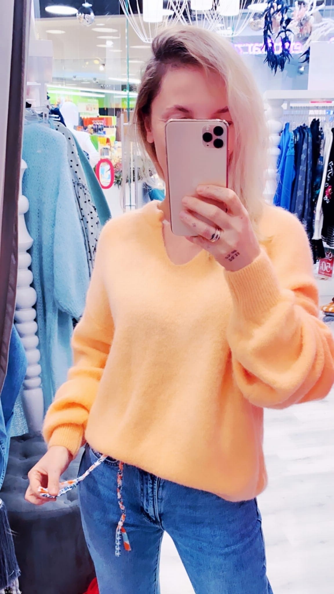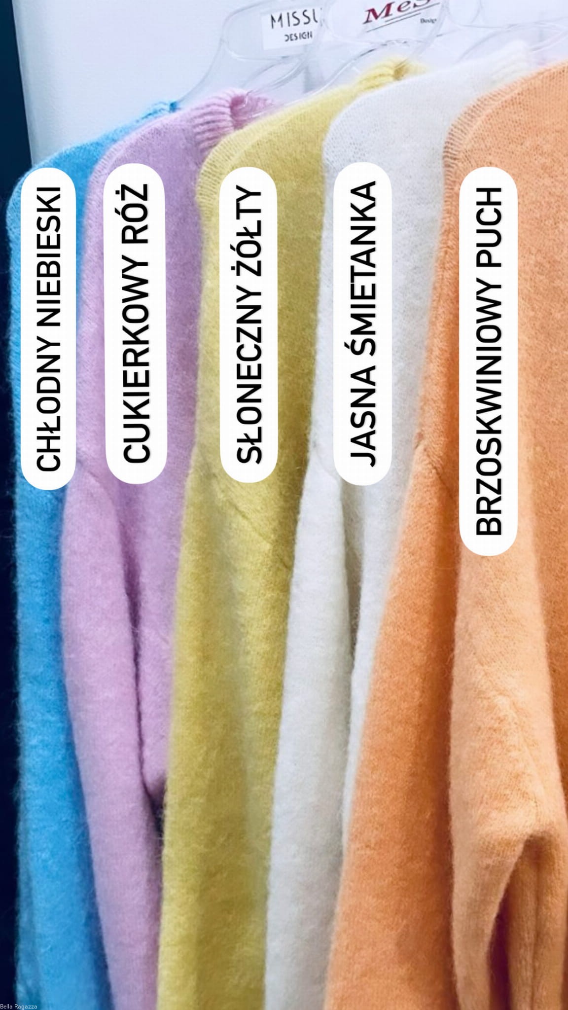 Modelka blondynka ma 162 cm wzrostu i nosi rozmiar XS, modelka brunetka ma 170 cm wzrostu i nosi rozmiar MWymiary:• Długość całkowita: 70 cm• Szerokość od pachy do pachy: 69 cm• Długość rękawa od pachy: 58 cmUbrania mierzone są na płasko. Poszczególne wymiary mogą różnić się +/- 2 cm.Skład materiału:52% Alpaka, 32% Poliamid, 13% Wełna, 3% Elastan
