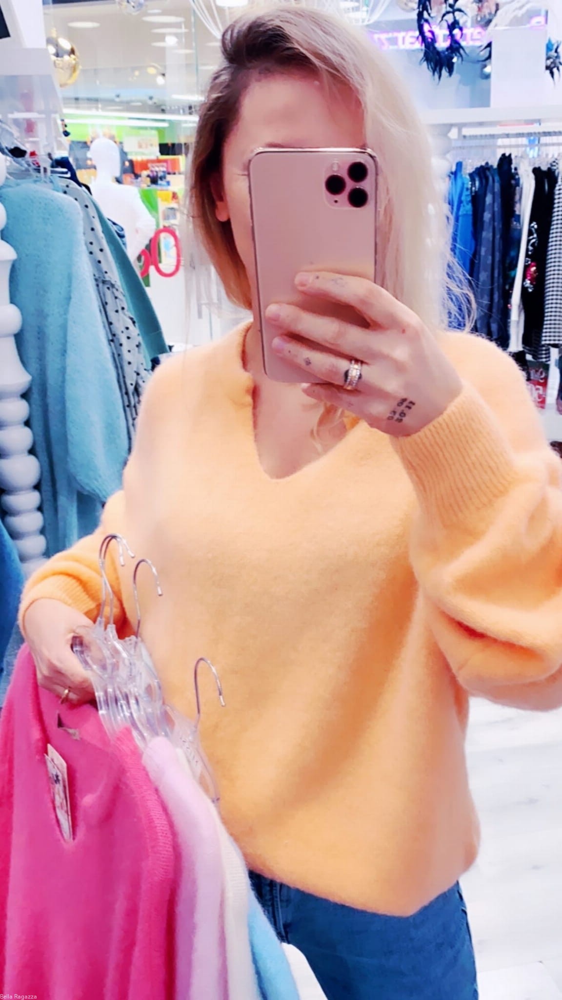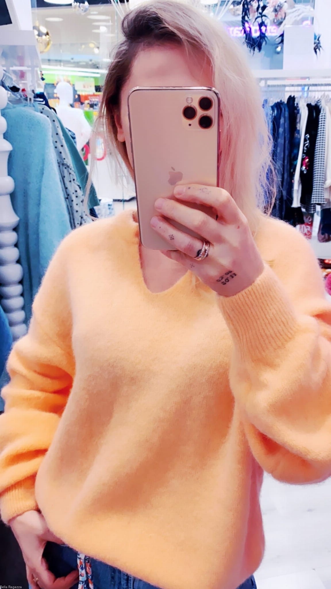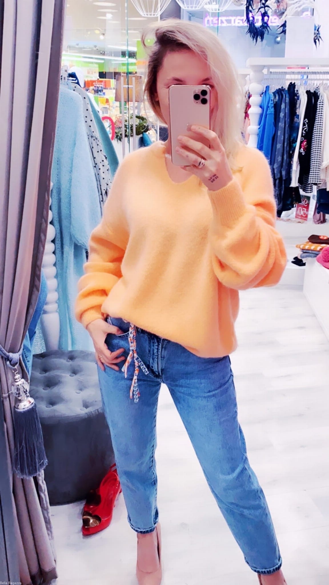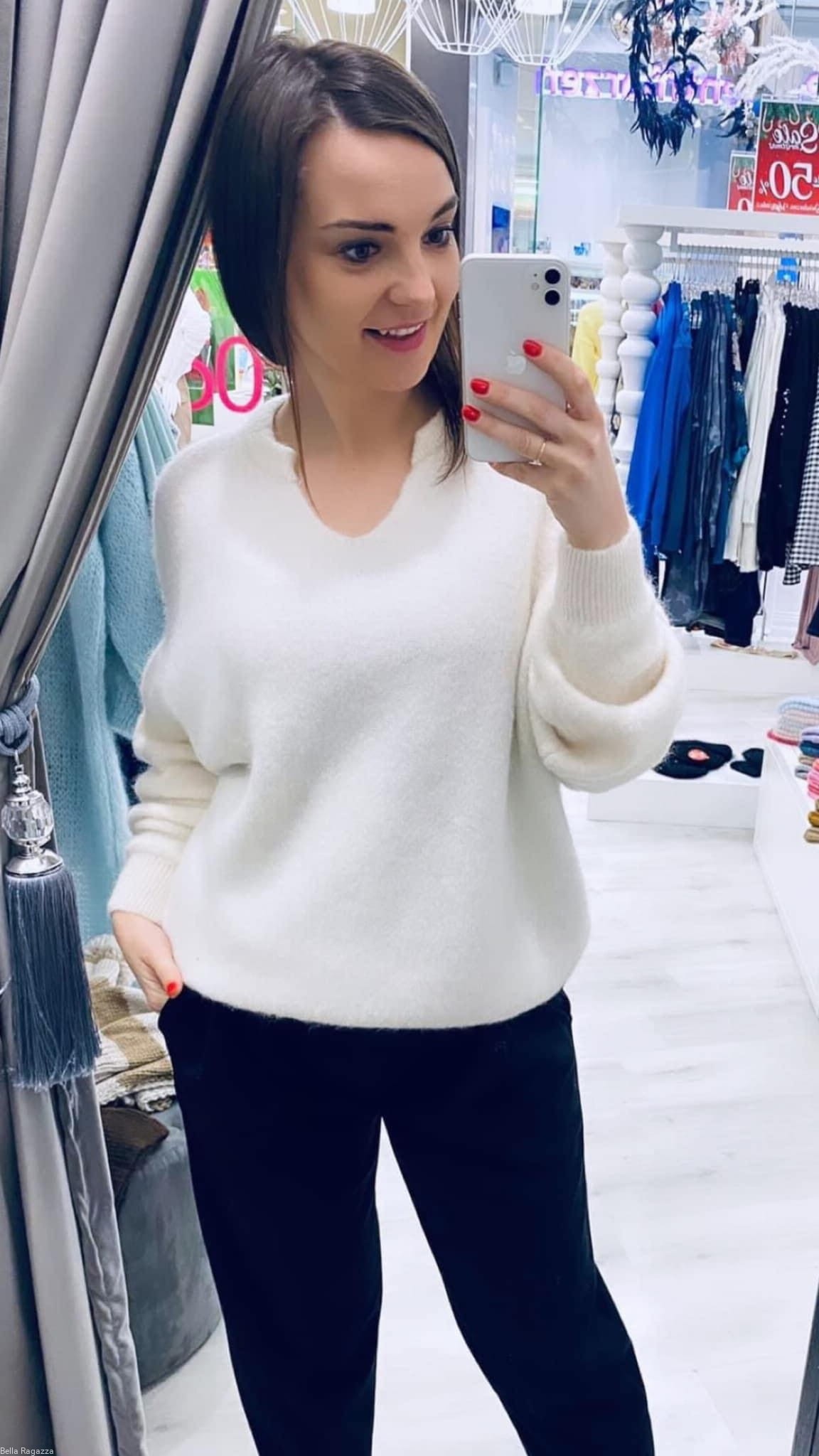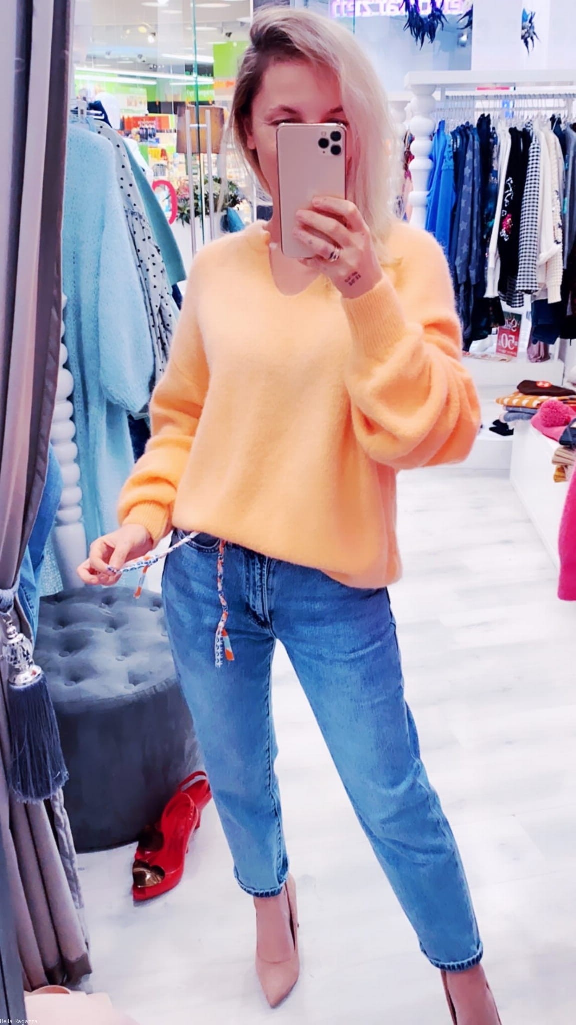 Modelka blondynka ma 162 cm wzrostu i nosi rozmiar XS, modelka brunetka ma 170 cm wzrostu i nosi rozmiar MWymiary:• Długość całkowita: 70 cm• Szerokość od pachy do pachy: 69 cm• Długość rękawa od pachy: 58 cmUbrania mierzone są na płasko. Poszczególne wymiary mogą różnić się +/- 2 cm.Skład materiału:52% Alpaka, 32% Poliamid, 13% Wełna, 3% Elastan