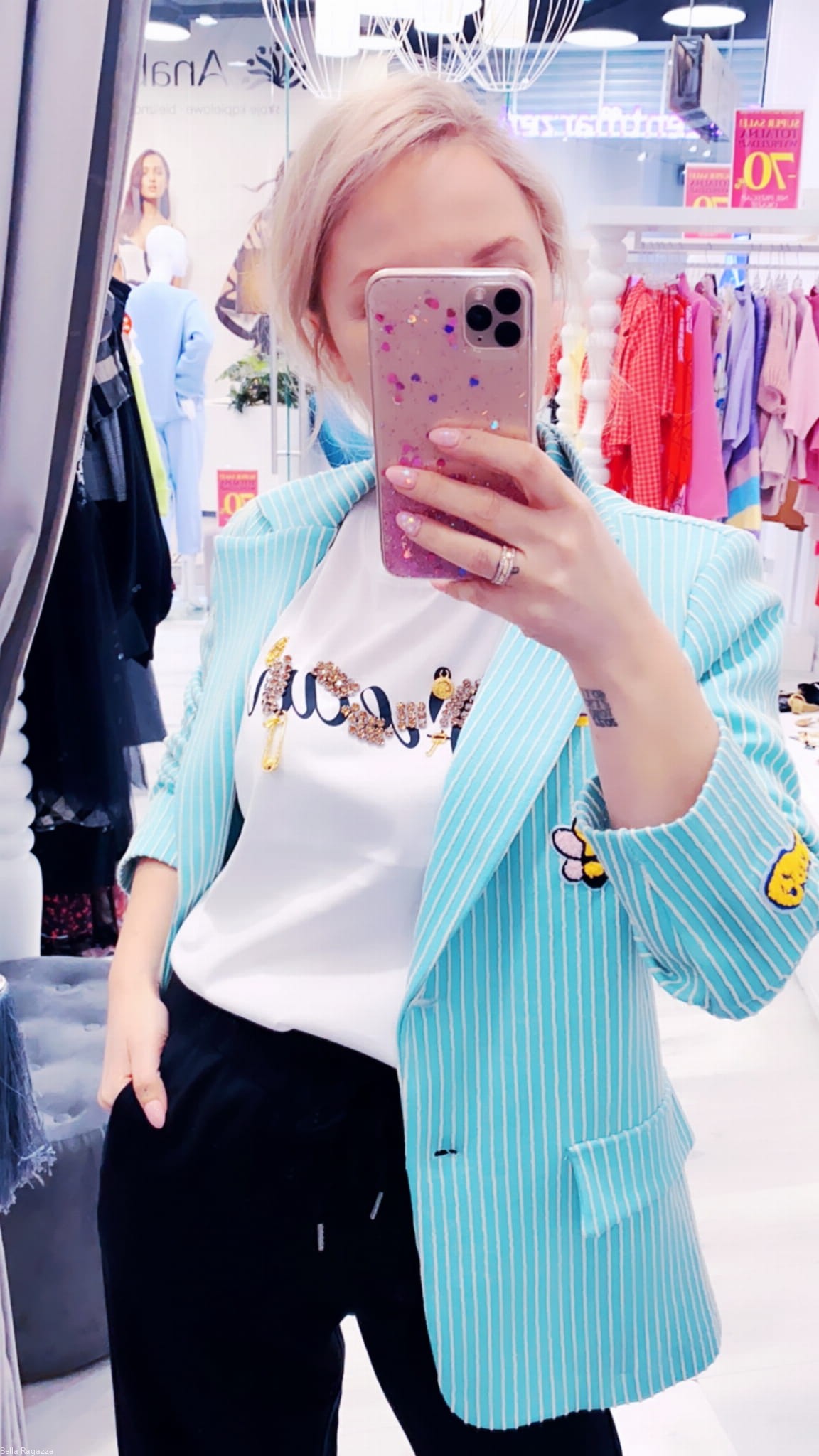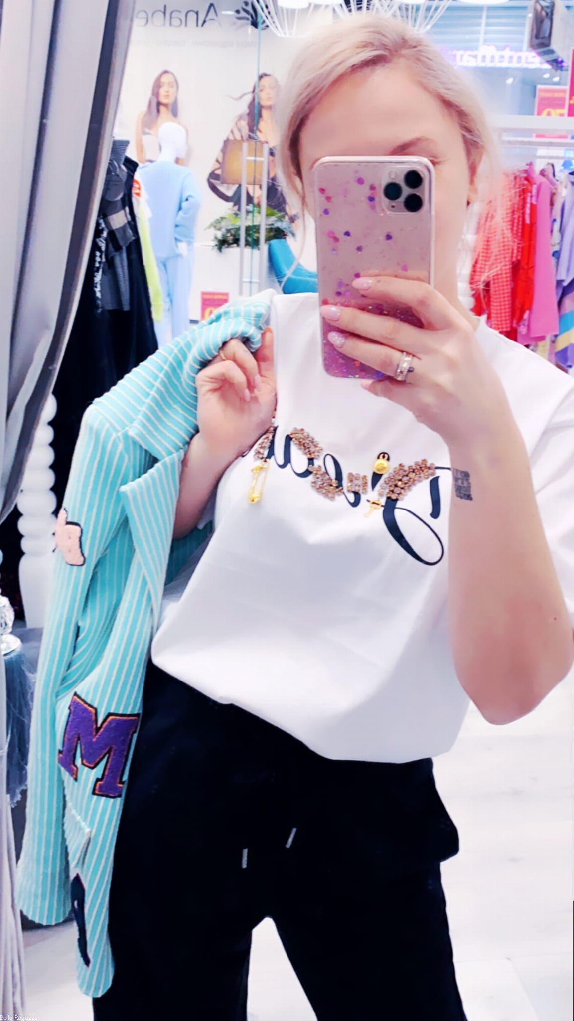 - T-shirt oversizowy zdobiony kamieniami i złotem