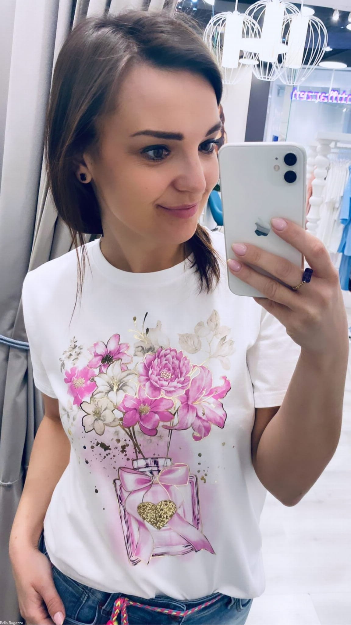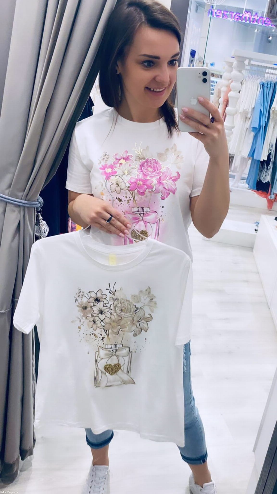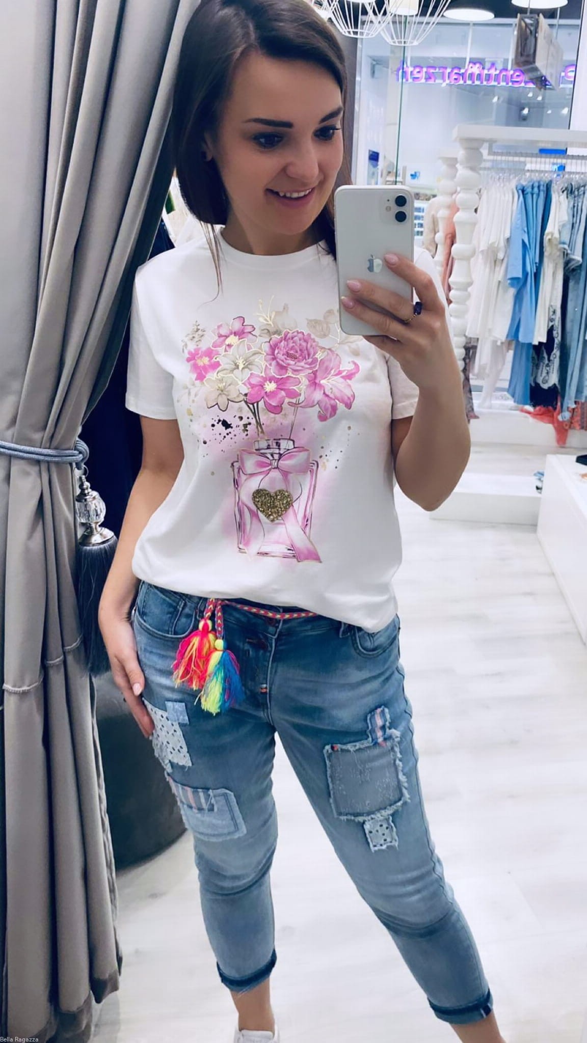 T-shirt idealnie skomponuje się z każdymi jeansami, naszymi gotowymi patkami i szortami