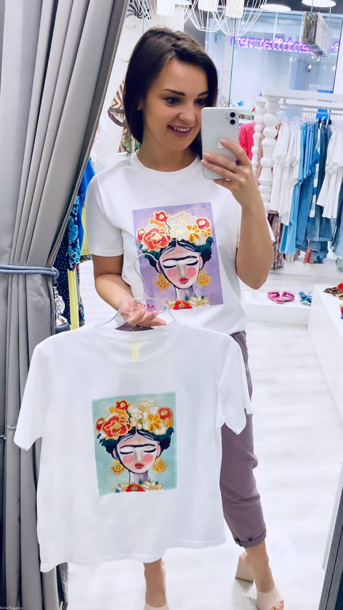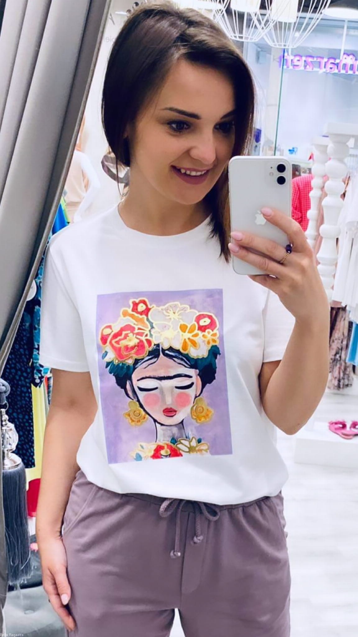 T-shirt z portretem Fridy z delikatnym złoceniem